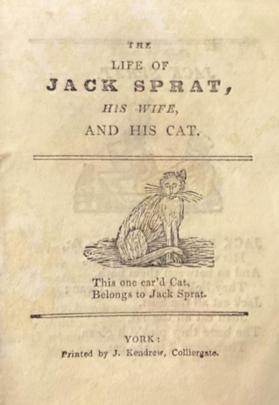 KENDREW, James [publisher] 22 Chapbooks. York, [c1810-1830] ‘The Cheerful Warbler’, ‘Cinderilla’, ‘A Collection of Birds & Riddles’, ‘The Comic Adventures of Old Mother Hubbard…Part 1’, The Courtship, Marriage and Pic Nic Dinner of Cock Robin and Jenny Wren’,’An Elegy on the Death and Burial of Cock Robin’, ‘ The History of a Little Boy Found Under a Haycock’,’ The History of Little Tom Tucker’, ‘The History of Sam the Sportsman’, ‘ The History of Simple Simon’,’ Jack and Jill and Old Dame Gill’,’ Jack Jingle and Sucky Shingle’,’ Jacky Dandy’s Delight’, ‘ The Life and Death of Jenny Wren’, ‘ The Life of Jack Sprat’, ‘The Little Maid and the Gentleman’,‘ The Mother’s Gift’,’ The New Riddle Book’,‘ Old Dame Trot’,’Tom The Piper’s Son’,’ A Visit to the Tower’,’ The Waggon Load of Money’.
