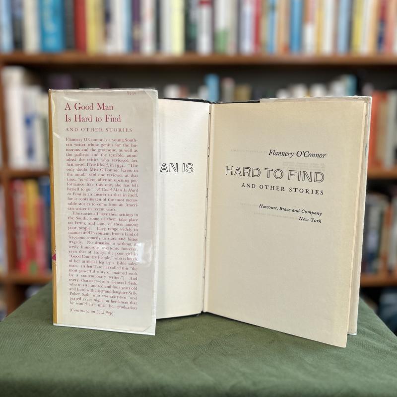The second book from American writer Flannery O’Connor, A Good Man is Hard to Find and Other Stories is a collection of ten masterful “Southern Gothic” short stories with subjects ranging from baptism to freak shows to oppressive mothers. O’Connor is widely recognized as one of the most important 20th century American short story writers, and her posthumously compiled Complete Stories won the 1972 National Book Award. This first edition, early impression is presented in an unclipped first issue dust jacket, with a price of $3.50 and reviews for O’Connor’s previous novel Wise Blood on rear. (The second issue jacket has a price of $3.95 and makes reference to O’Connor’s death in 1964, with reviews of A Good Man is Hard to Find on rear.) The text retains original errors with “tyring” instead of “trying” on page 125.