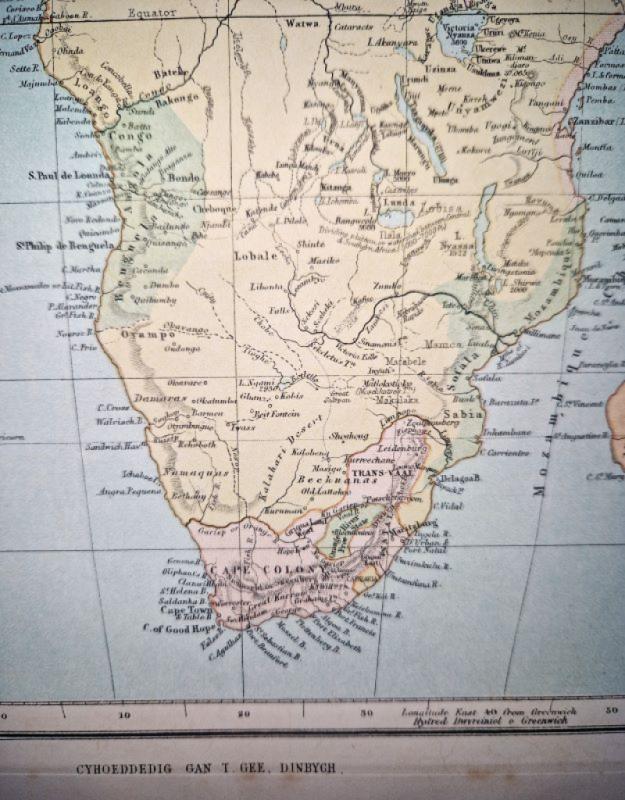 This map derives from 'The Encyclopedia Cambrensis' or 'Y Gwyddoniadur Cymreig', which was the most ambitious encyclopedia in the Welsh language. It was published in 10 volumes between 1854 and 1879 by Thomas Gee at his own printer's office in the town of Denbigh, Gwasg Gee. The general editor was his brother-in-law, John Parry who was also a lecturer at the College of Bala. It remains the largest paper publication in the Welsh language.
