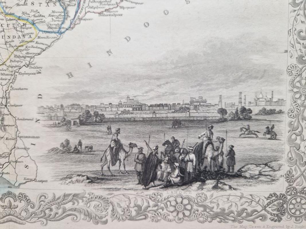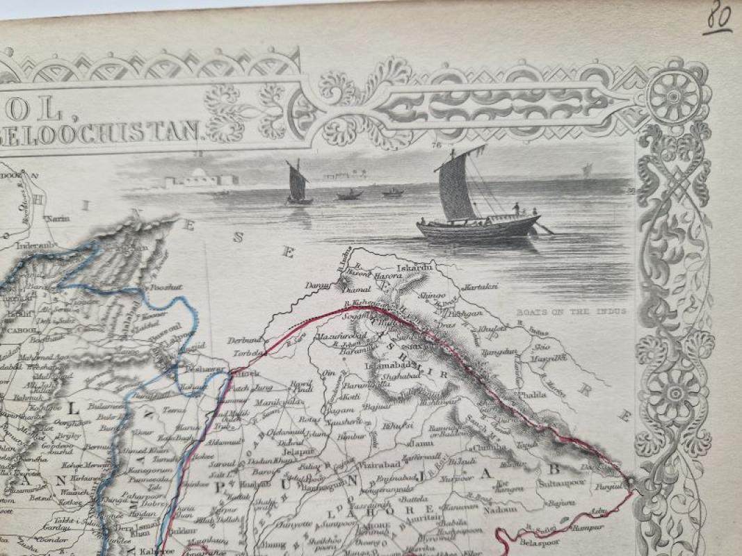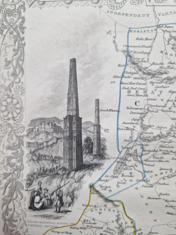 The map shows Cabool, Afghanistan, the Punjab and Balochsitan; it is surrounded by a very decorative border, and some vignettes within the image, depicting various scenes.