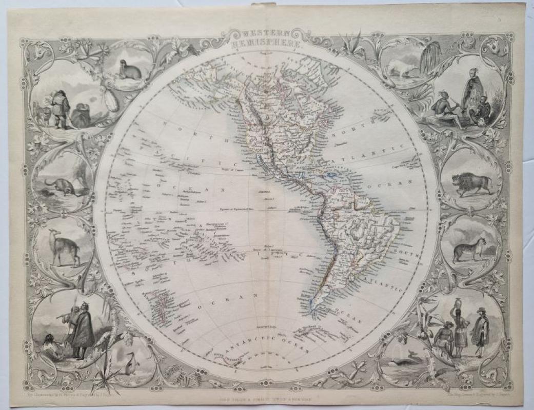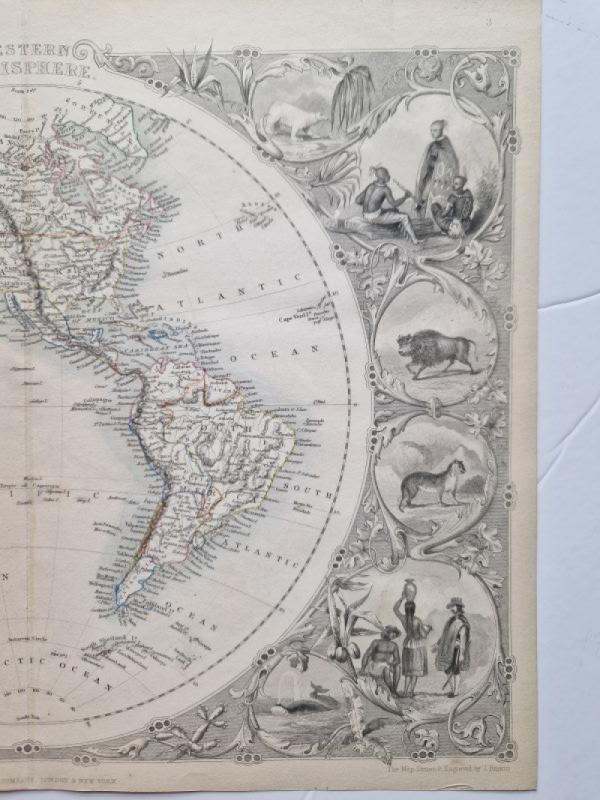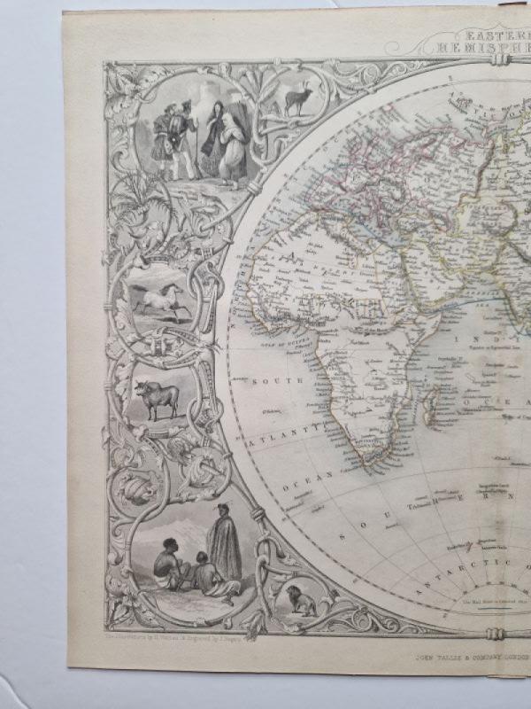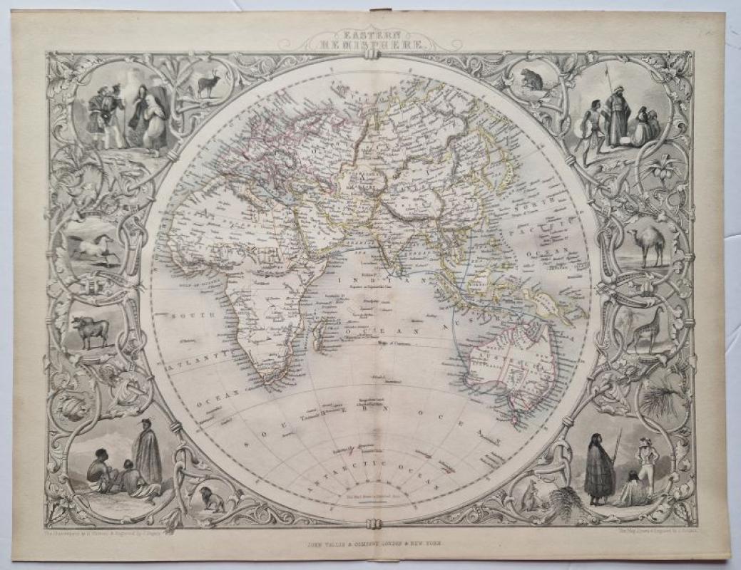 The two maps show both Hemispheres. Each map is surrounded by various vignettes, depicting indigenous animals and fauna as well as various peoples in their traditional costumes.