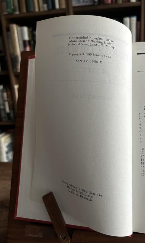 George Orwell: A Life, Bernard Crick, Secker & Warburg, 1980, First Edition, First Impression