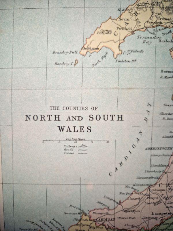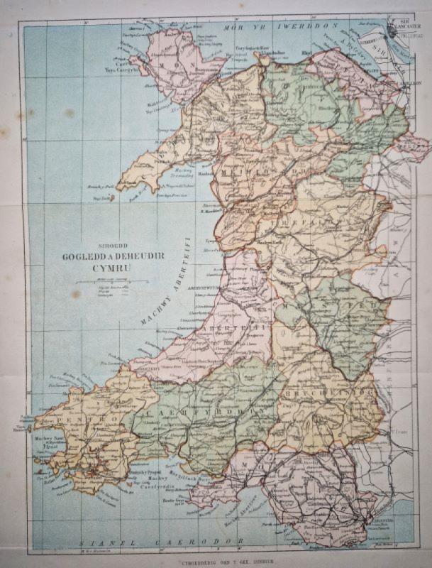 This map derives from 'The Encyclopedia Cambrensis' or 'Y Gwyddoniadur Cymreig', which was the most ambitious encyclopedia in the Welsh language. It was published in 10 volumes between 1854 and 1879 by Thomas Gee at his own printer's office in the town of Denbigh, Gwasg Gee. The general editor was his brother-in-law, John Parry who was also a lecturer at the College of Bala. It remains the largest paper publication in the Welsh language.