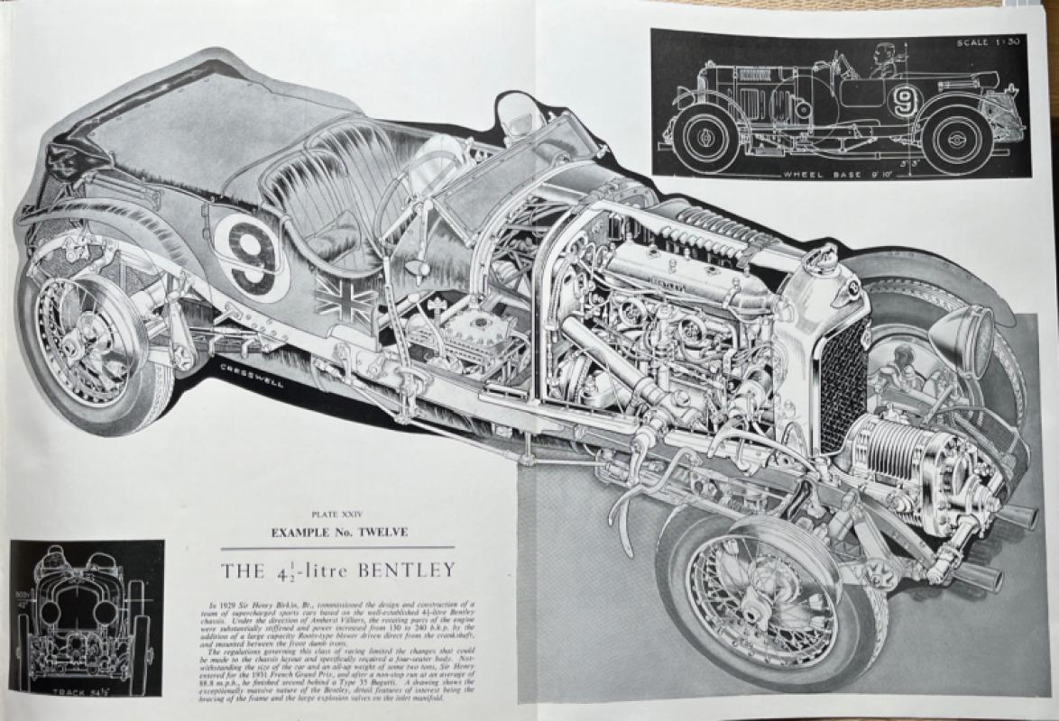“This book is written with three distinct, if related, sections. The first of these gives a summarised history of Grand Prix racing in 1906-39 ; the second paints a broad picture of engineering development in this period by describing seventeen typical Grand Prix cars [including a Blower Bentley see p.182 et seq] with specification lists.... ; whilst the third section provides a contiuous historical narrative of technical change and relates engineering factors to road performance”. - from the Foreword.