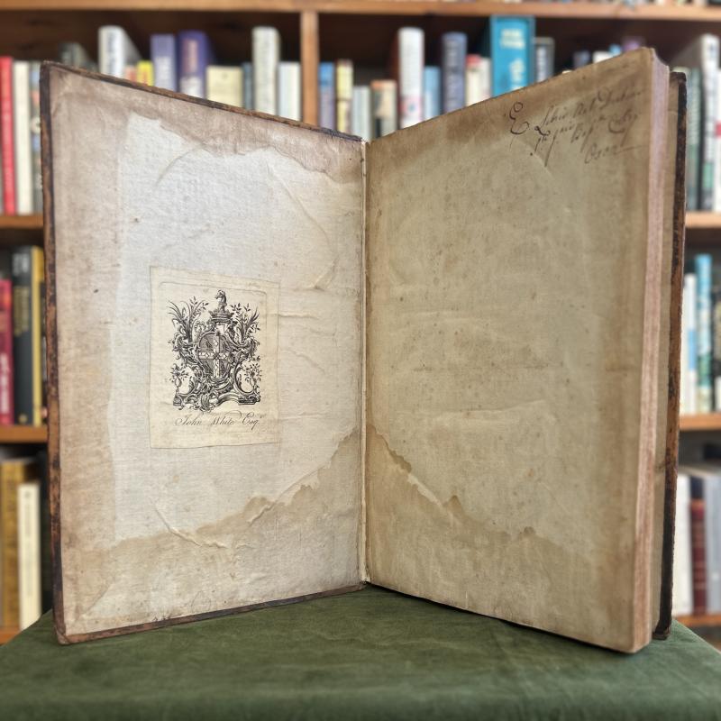 Rubbing to board extremities with some surface chips to leather, especially on rear. Lacks frontispiece portrait and front blank. Contents with water-staining to lower portion throughout, resulting in only slight warping to pages. Binding firm and tight with hinges fine. Previous owner’s inscription in ink to front flyleaf with an engraved bookplate neatly presented on the front pastedown.
