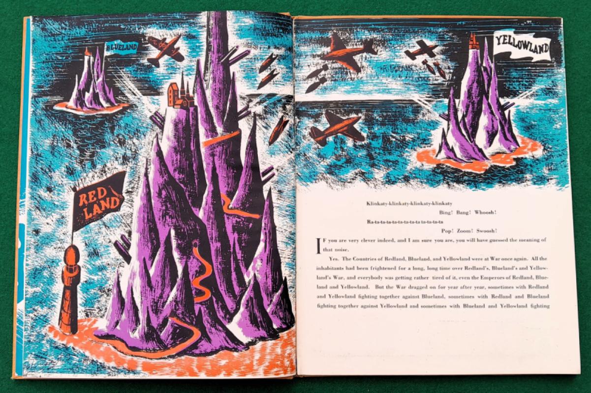 Pictorial endpapers, decoratively lettered title page, dramatic colourful illustrations throughout plus some in black and white [24 pages] 280 x 215 mm [approx. 11” x 8 ½”] gilt decorated orange cloth; covers have some fading and dust-marking, tips a bit worn, generally very good condition. Peter Lunn (publishers) limited, 1st edition 1945