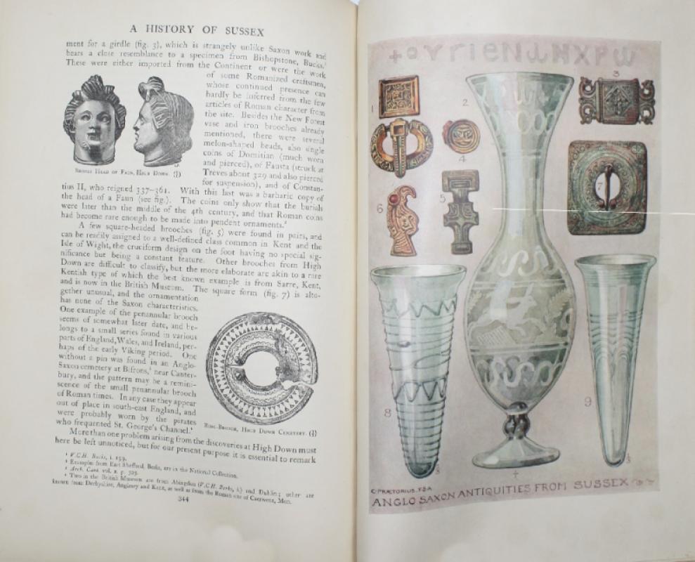 Volume one covers natural history (geology, botany, marine zoology, insects, birds, reptiles and fish) and archaeology. Contributors include R. Lydekker, Malcolm Burr, William J. Lucas, Claud Morley, Edward Saunders, Rev. Canon Fowler, William H.B. Fletcher, Edward A. Butler, F.O. Pickard-Cambridge, John Guille Millais, etc.