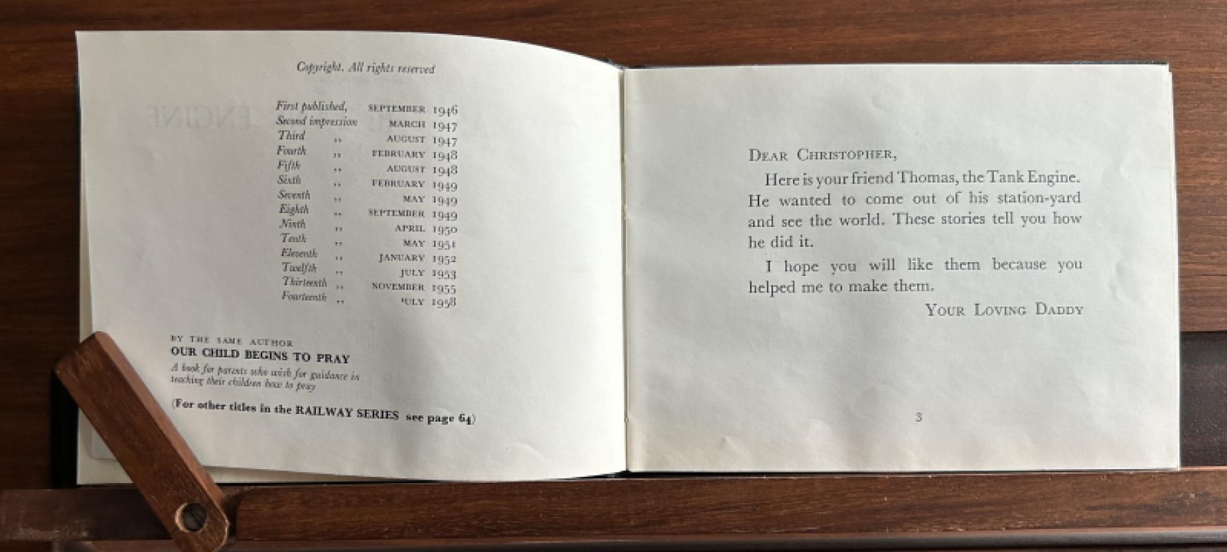 The Thomas The Tank Engine series of books were written by the author to amuse his som Christopher during a bout of measles. This is the second book in the series where the reader is introduced to Thomas for the first time.